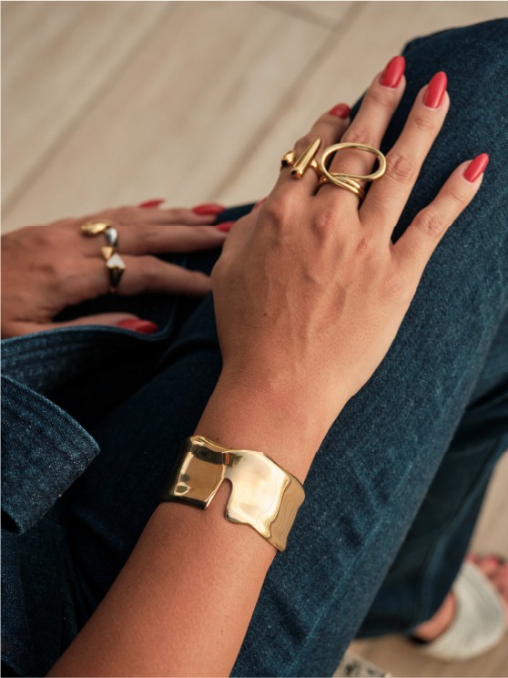 GOLD WIDE WAVY BAND RING