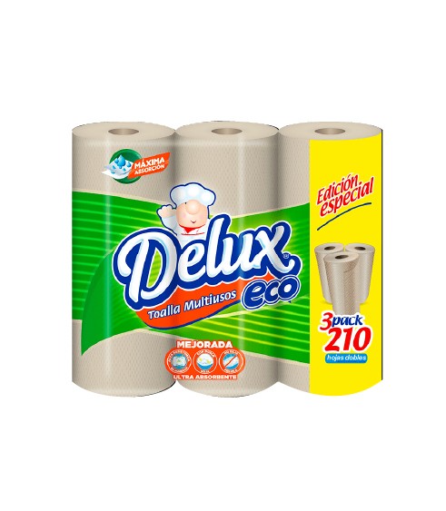 DELUXE PAPER TOWELS 3 NATURAL DOUBLE-SHEET ROLLS